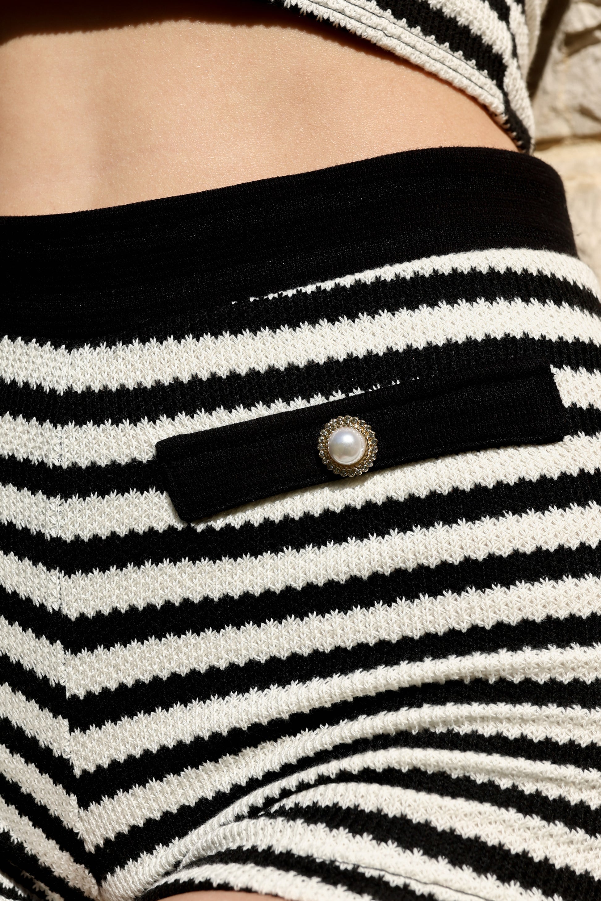 A striped two-piece with a soft, structured fit and pearl-button details. Designed to move with ease, it’s an effortless set made for warm days and relaxed evenings.